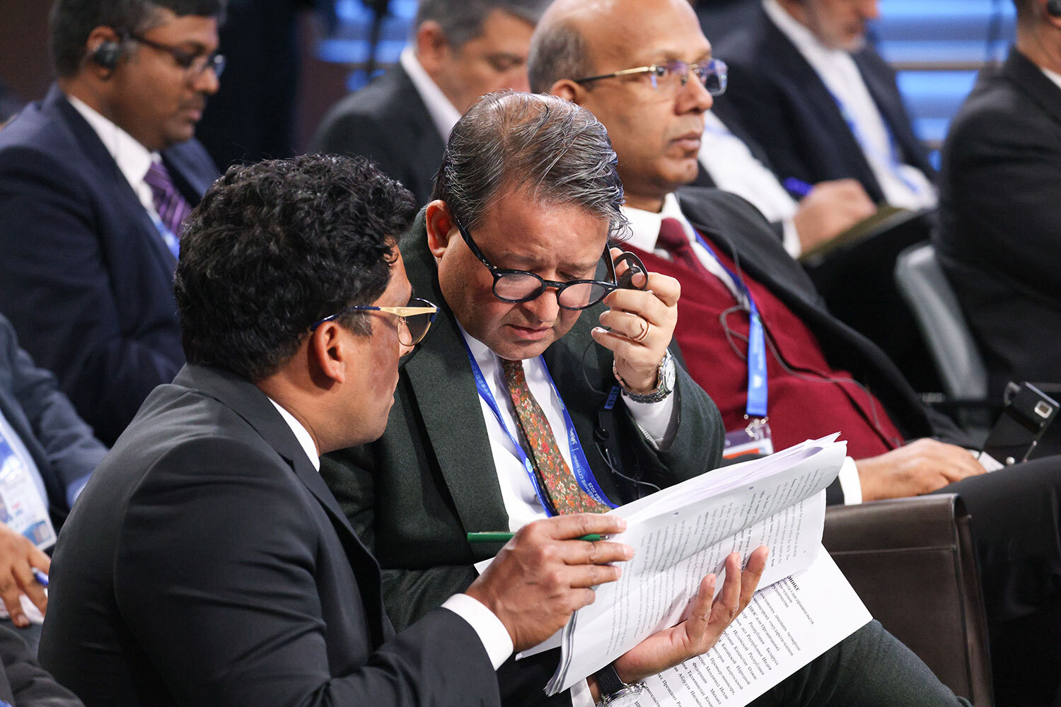 Максим Стулов / ВедомостиДля участия в заседании, помимо главы Госсовета Китая Ли Цяна, в Москву прибыли премьер-министры Белоруссии, Казахстана, Узбекистана и Таджикистана Александр Турчин, Олжас Бектенов, Абдулла Арипов и Кохир Расулзода, председатель кабмина Киргизии Адылбек Касымалиев, первый вице-президент Ирана Мохаммад Реза Ареф, министры иностранных дел Индии и Пакистана Субраманьям Джайшанкар (на фото) и Мухаммад Исхак Дар.