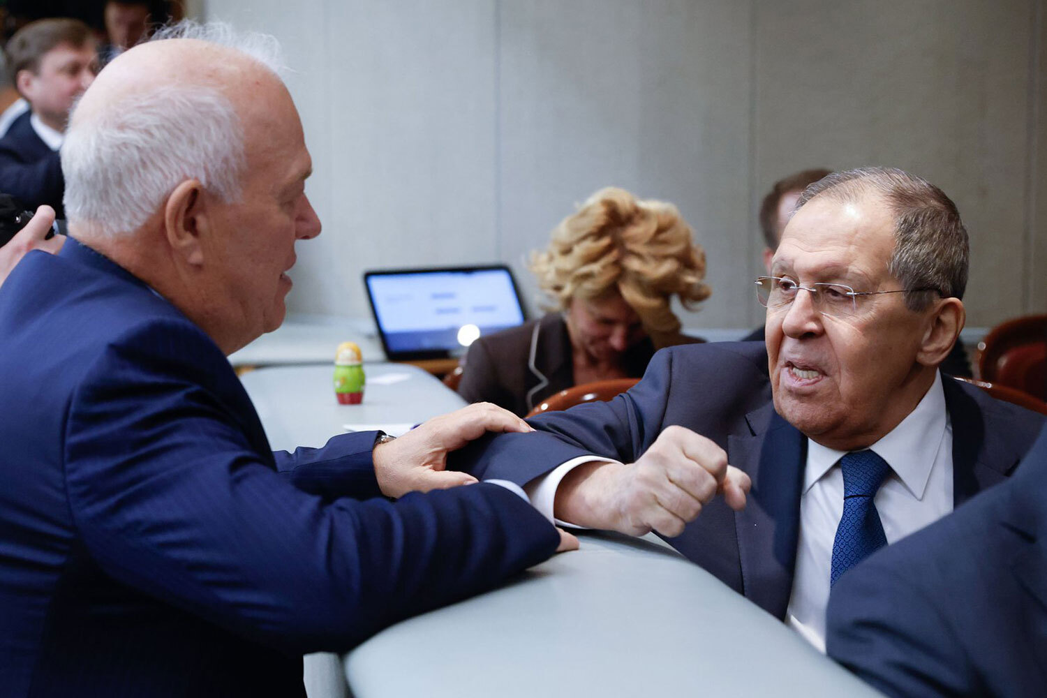 Заместитель председателя комитета Госдумы по экологии, природным ресурсам и охране окружающей среды Анатолий Грешневиков и глава МИД РФ Сергей Лавров.