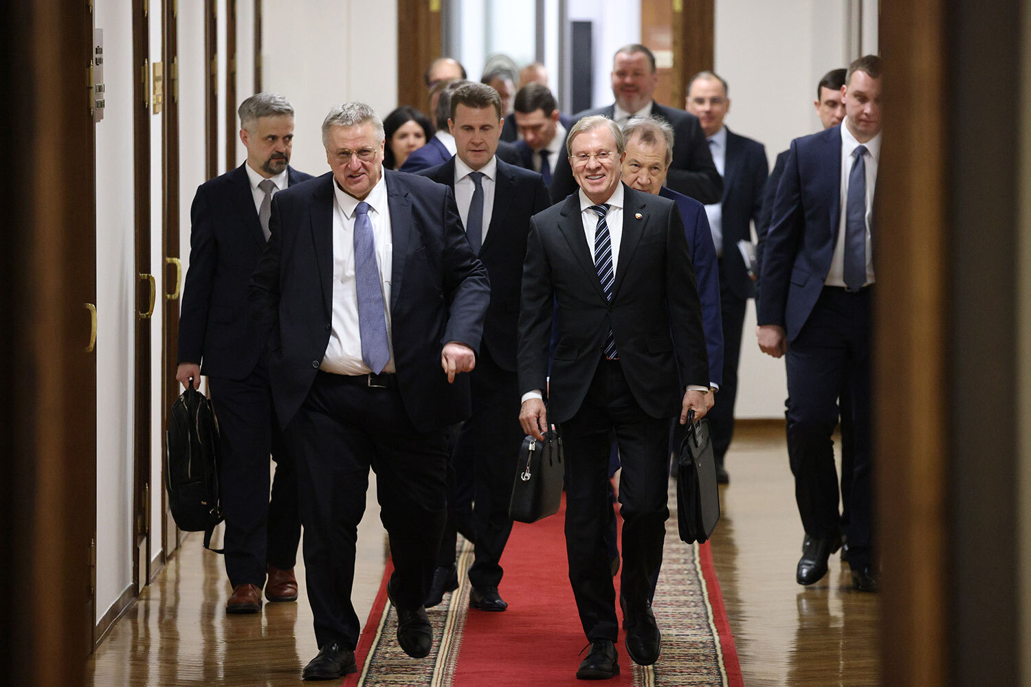 Зампредседателя правительства РФ Дмитрий Чернышенко и руководитель фракции «Единая Россия» в Госдуме Владимир Васильев.
