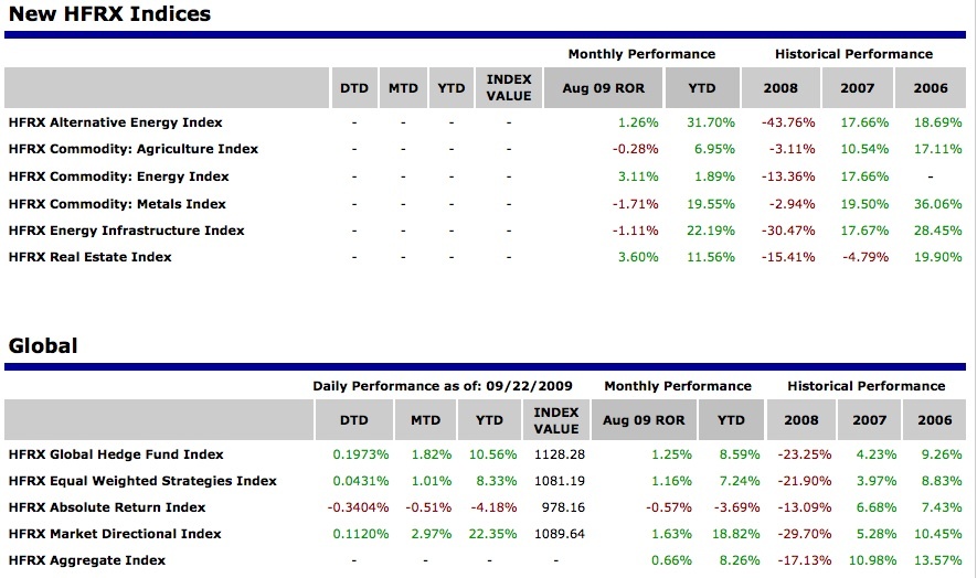 Самую лучшую динамику первых восьми месяцев года с 2000 г. и самый длинный период последовательного роста с конца 2007 г. индустрия хедж-фондов смогла продемонстрировать благодаря росту уверенности инвесторов в восстановлении экономики. "Мы верим, что худший этап кризиса пройден и рынки постепенно возвращаются к нормальным уровням функциональности и динамики", - цитирует Bloomberg Спенсера Янга, председателя HFA Holdings с $6,16 млрд средств под управлением.