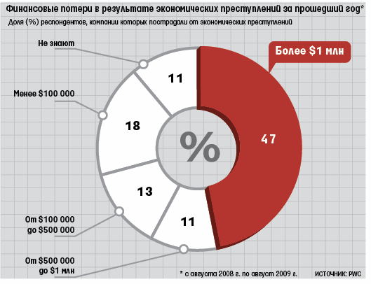 Либо в России самый высокий уровень экономической преступности в мире, либо самые откровенные люди, выяснила Pricewaterhouse-Coopers. С начала кризиса жертвами преступлений стали 71% опрошенных компаний, а почти половина респондентов живет под страхом хищения активовПроведенные в июле – сентябре Price-waterhouseCoopers (PwC) опросы более 3000 компаний из 55 стран показали, что в среднем 30% из них с начала кризиса стали жертвой хотя бы одного серьезного экономического преступления. Россия заняла в этом рэнкинге первое место с уровнем в 71% (см. врез), следом идут Кения (67%) и ЮАР (62%), а в числе лучших Нидерланды (15%), Гонконг (13%) и Япония (9,6%).