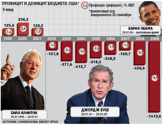 Как сообщило вчера бюджетное управление конгресса, дефицит казны снизится в 2010 финансовом году на $100 млрд до $1,3 трлн, в 2011 г. – до $980 млрд. А Белый дом в ноябре обещал в среднесрочной перспективе сократить разрыв в доходах и расходах до 3% ВВП (сейчас 9,9%).