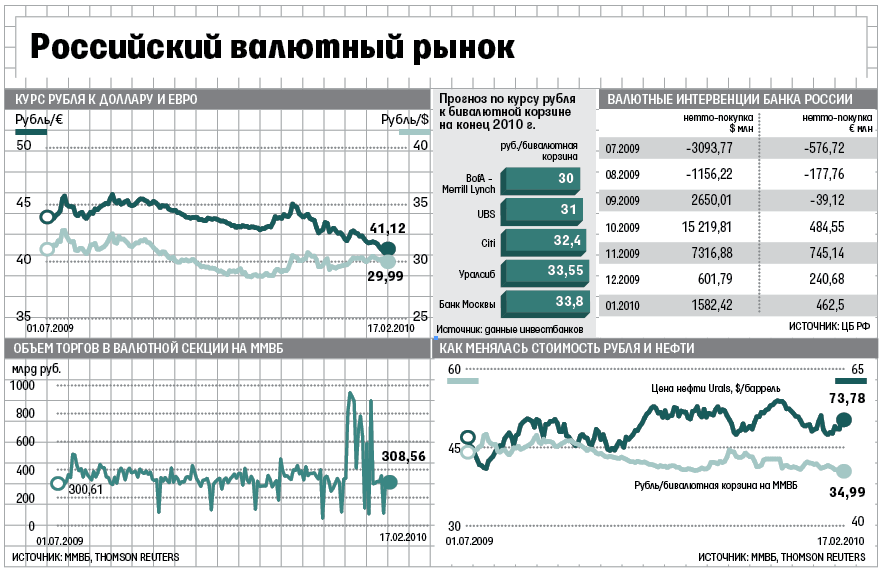 Стоимость бивалютной корзины вчера снижалась весь день и по последним сделкам на ММВБ составила 34,9964 руб., выйдя за пределы технического коридора колебаний курса – 35–38 руб. за бивалютную корзину. Год назад ЦБ установил коридор колебаний курса 26–41 руб., а внутри него – более узкий. Его ширина – 3 руб., зато границы могут меняться, объяснял первый зампред ЦБ Алексей Улюкаев: в нем ЦБ намерен удерживать курс, при необходимости проводя интервенции.
