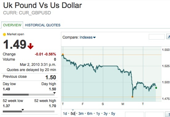 По мнению трейдеров, движущей силой изменения курса валюты стали опасения, касающиеся бюджетной политики Великобритании. Активное снижение началось после того, как были опубликованы данные общественных опросов, продемонстрировавшие, что на майских выборах может победить правящая партия. По мнению Джорджа Озборна, спикера со стороны оппозиционной партии, снижение курса валюты означает, что инвесторы уже закладываются на победу лейбористов на выборах в мае. Выступая на партийном собрании, Озборн заявил, что если рынки решат, что Браун выиграет выборы, то «мы увидим бег к выходу».