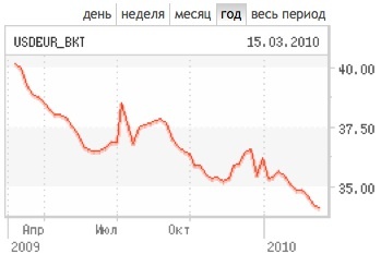 Сегодня не без помощи министра финансов Алексея Кудрина курс бивалютной корзины на торгах на ММВБ снизился до 34,0949 руб. За месяц корзина валют (55 центов и 45 евроцентов) потеряла почти рубль.