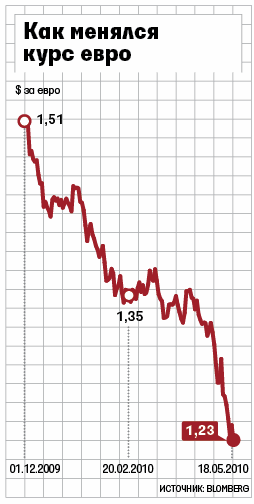 О проблемах Греции стало известно в середине декабря 2009 г., когда агентства понизили ее рейтинги. К февралю, когда стало понятно, что страна не может обслуживать долг, евро по отношению к доллару подешевел на 7% – с $1,4756 до $1,3727. С февраля по утро понедельника евро упал еще на 10,8% до минимума за последние четыре года – $1,2240.