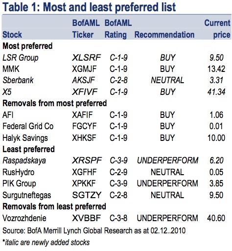 Рекомендации Merrill Lynch по российским акциям