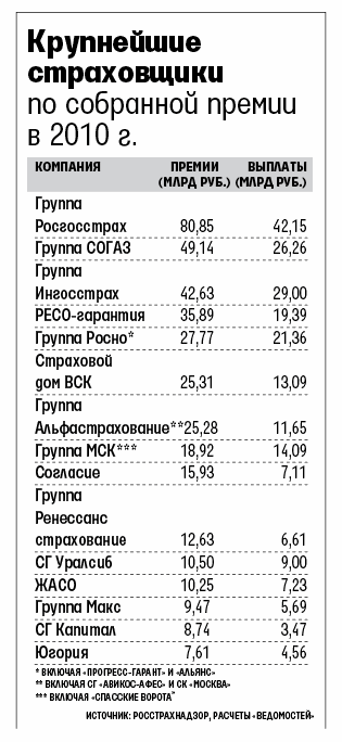 Страховой рынок собрал в 2010 г. свыше триллиона рублей