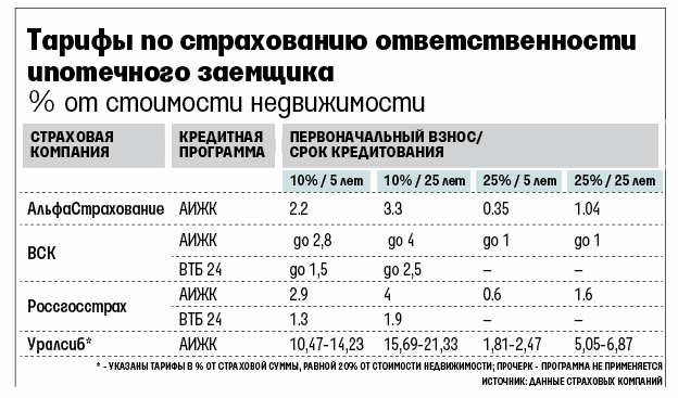 Плату за право снизить первоначальный взнос вряд ли можно назвать символической. Полис стоит не менее 10% от суммы, на которую снижается первоначальный взнос, или в среднем 1,5–3% от стоимости недвижимости (см. таблицу). «Точный размер зависит от суммы собственных средств заемщика, направляемых на покупку жилья, и от срока кредита», – говорит руководитель управления розничных продаж ВСК Дмитрий Пугашкин.
