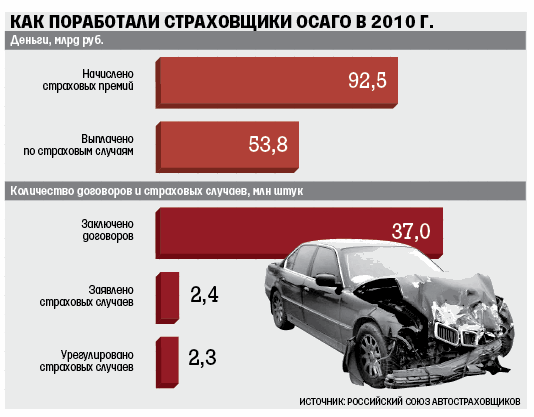 Сборы страховщиков ОСАГО могут вырасти на 22%, если поправочные коэффициенты будут утверждены, подсчитал источник, близкий к Российскому союзу автостраховщиков (РСА). В 2010 г. члены РСА продали полисов ОСАГО на 92,5 млрд руб.