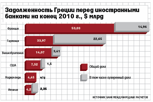 Принять план Греции необходимо, чтобы получить от еврозоны и МВФ 12 млрд евро к 15 июля – иначе она не сможет расплатиться по облигациям. Эти средства – часть программы помощи стоимостью 110 млрд евро, принятой весной 2010 г. Предполагалось, что этих денег хватит до середины 2013 г., но Греции не удается сократить бюджетный дефицит и долг в нужных объемах.