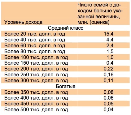 По оценкам ЦСИ, сегодня в России более 15 млн семей имеют доходы более $20 000 в год, а 38 000 семей – более $500 000 в год. Представитель компании отказался раскрывать методологию оценки, заметив, что использовались данные статистики потребления различных товаров и услуг, в первую очередь статистика рынка недвижимости, рынков люксовых предметов потребления, автотранспорта, продовольствия, инвестиционных и страховых услуг.