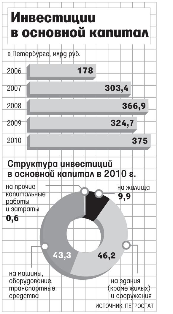Список крупных инвесторов в Петербурге в основном сформирован, говорит начальник аналитического отдела ИК «Ленмонтажстрой» Дмитрий Кумановский. Помимо проектов нефтяников и приходящей в город «Газпром нефти» большую долю занимают проекты, связанные с развитием инфраструктуры: строительство аэроэкспресса (инвестиции – около 9 млрд руб.), ЗСД (212 млрд руб.), Орловского тоннеля (47,7 млрд руб.), перечисляет он. Срок окупаемости таких проектов составляет от 15 до 30 лет, отмечает Кумановский.