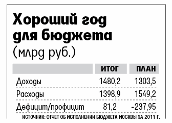 Год закончился с профицитом в 81,2 млрд руб. при ожидавшемся дефиците в 238 млрд. Это предварительные итоги, уточняет столичный чиновник.