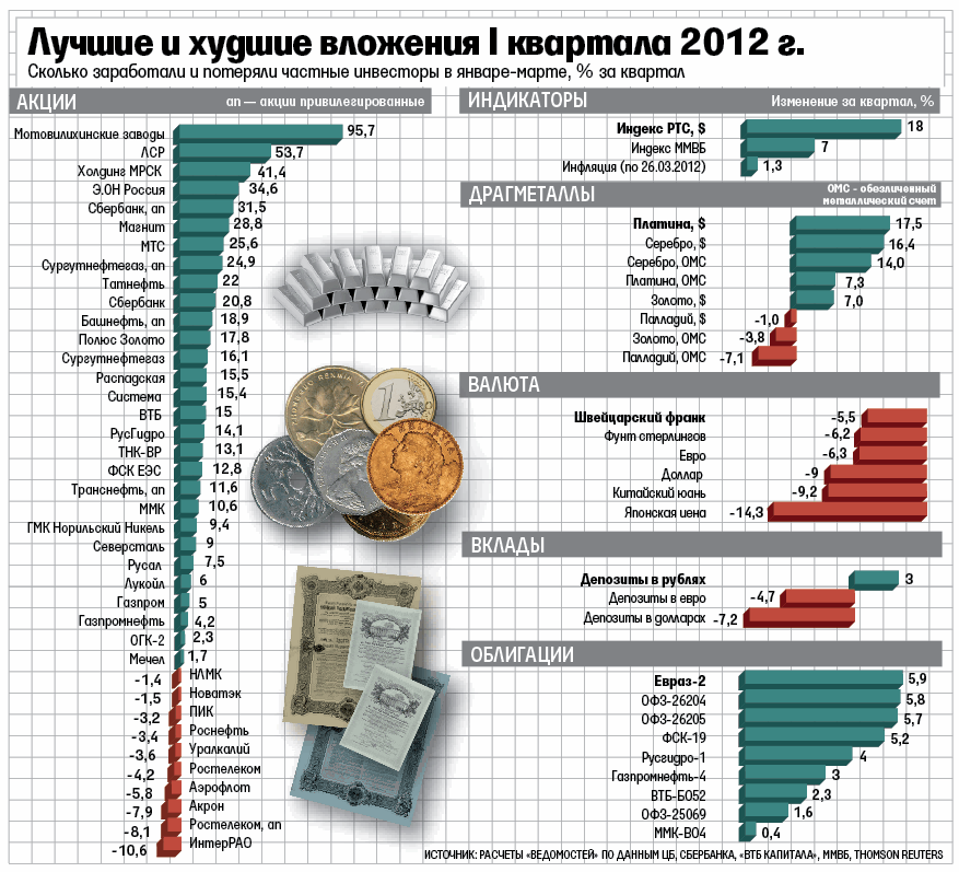 Сколько и на чем заработали инвесторы в январе–марте 2012