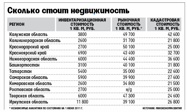 Инвентаризационная стоимость может отличаться от рыночной в 10 и более раз, говорит директор департамента Минэкономразвития Андрей Ивакин, кадастровая больше приближена к рынку. Это подтверждают итоги массовой оценки, проведенной в 12 регионах (см. таблицу). Завершиться оценка по всей стране должна до конца года.
