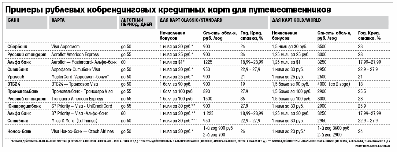 Наибольшей популярностью у часто путешествующих людей пользуются карты, выпущенные банками совместно с авиакомпаниями. Большинство таких карт кредитные. Они позволяют накапливать бонусы (мили, баллы) от авиакомпаний, которые потом можно обменять на полет.