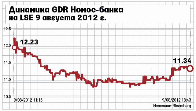 8 августа на ММВБ была заключена сделка с акциями Номос-банка почти на 500 млн руб., или почти 1% уставного капитала. Это поразительно много для такой не очень ликвидной бумаги: например, днем ранее оборот по акциям «Номоса» был 2 млн руб., отмечает аналитик Газпромбанка Андрей Клапко.