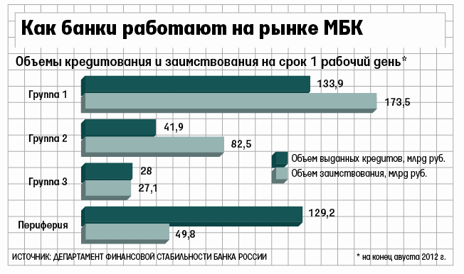 «Думаю, причина этого – в риск-менеджменте: мелкие банки всегда устанавливают лимиты на межбанке на крупные банки, но зато крупные банки очень редко имеют кредитные лимиты на небольшие, – полагает аналитик Бинбанка Михаил Гонопольский. – Чаще всего не устанавливают их совсем». «Дефицит ликвидности по системе сейчас скачет на уровне 1,3–1,5 трлн руб. в зависимости от налогового периода, и в основном он образован крупными банками», – напоминает аналитик. Поэтому сумма в 80 млрд руб. в любом случае не способна закрыть дефицит ликвидности крупных банков, уверен Гонопольский.