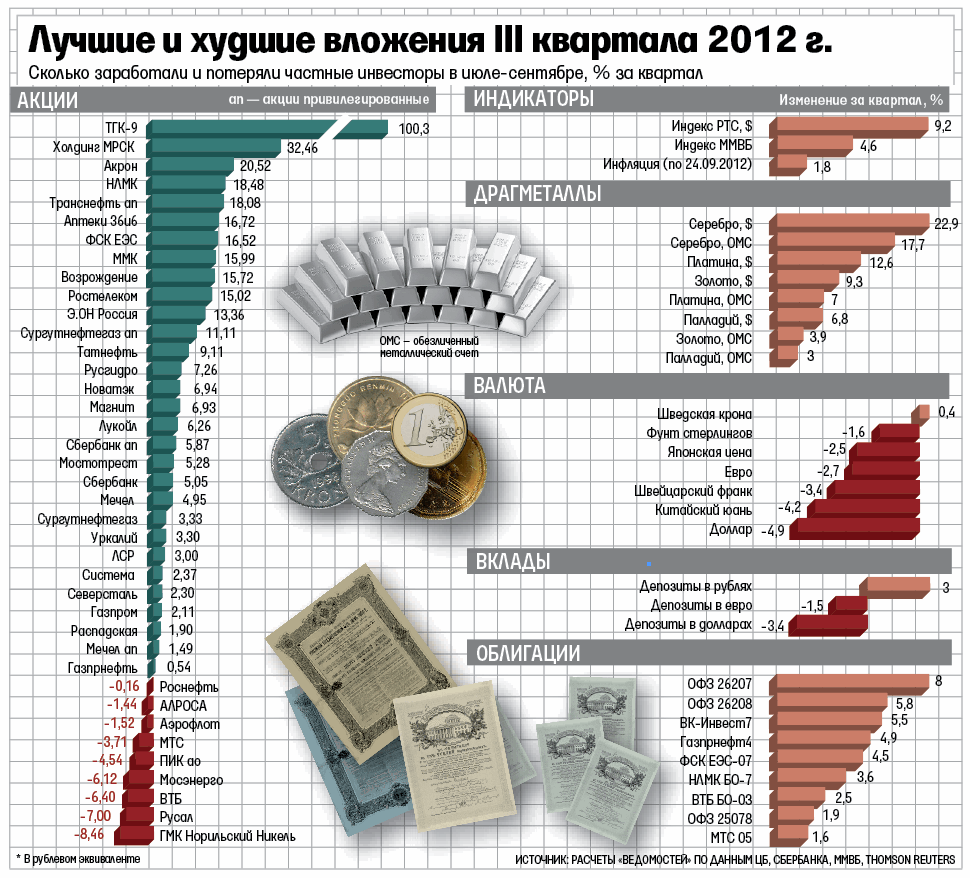 Сколько заработали и потеряли инвесторы в июле – сентябре 2012 г.