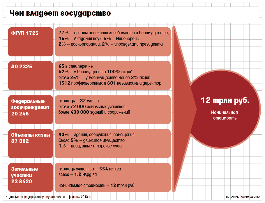Государство впервые оценило собственное имущество. Номинальная стоимость – 12 трлн руб., рыночная – 100 трлн