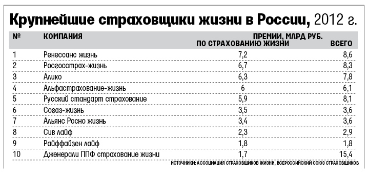 На 2-м месте – «Росгосстрах-жизнь», у которой традиционно сильны агентские продажи; на 3-м – компания «Алико» (продает продукты через банковский, агентский и корпоративный каналы).