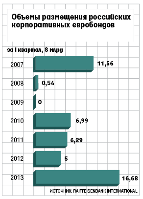Объем выпусков евробондов российских компаний в I квартале превысил рекордные объемы выпуска I квартала докризисного 2007 года ($16 млрд против $12 млрд), отмечает аналитик Raiffeisenbank International Александр Склемин. С начала года российские компании и банки разместили еврооблигаций на $25 млрд (за весь 2011 год – около $24,6 млрд, за 2012 г. – $52,9 млрд, свидетельствуют данные Reuters). Хотя кипрская эпопея несколько охладила рынок, после недолгого затишья активные первичные размещения продолжились, отмечает Склемин: «Первичный рынок представлен разнообразной рейтинговой палитрой эмитентов».