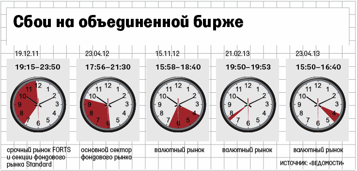 Сбой мог быть связан с продлением (с 15 апреля) на два часа торгов долларами с расчетами сегодня, полагает начальник управления операций на валютном и денежном рынках банка «Рост» Роман Пахоменко. Представитель биржи это не комментирует. Через день после продления торгов на бирже была зафиксирована рекордная активность: 17 апреля было заключено 38 677 сделок – максимум с момента создания рынка в 1992 г. В апреле на валютном рынке был зарегистрирован 5000-й клиент, а всего доступ к торгам предоставляют более 50 банков и брокерских компаний.
