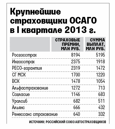 Наибольший вклад в рост выплат внес лидер – «Росгосстрах», на долю которого приходится более четверти рынка. Если в I квартале 2012 г. средняя выплата по ОСАГО у этой компании составляла 17 500 руб., то за год она выросла до 24 400 руб., или почти на 40%. Получить комментарии в «Росгосстрахе» вчера не удалось.
