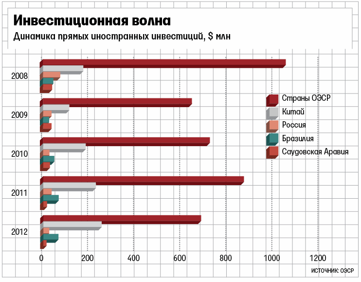 Зарубежные прямые инвестиции 34 стран ОЭСР (77% мирового объема) за год сократились на 15% до $1,1 трлн. Темпы восстановления во многих странах начали падать, поэтому многие иностранные компании заняли выжидательную позицию, солидарны в Конференции ООН по торговле и развитию (UNCTAD).