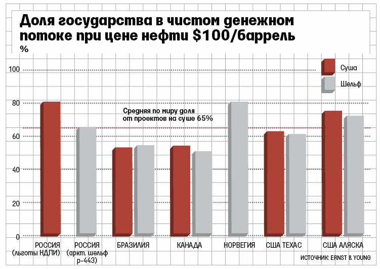 Улучшение отдачи нефти увеличивает стоимость добычи более чем втрое; чтобы обеспечить доход инвестору в $10 с барреля, налоговое изъятие не должно превышать $45 с барреля при его цене в $110, подсчитали в Ernst & Young. Это около 80% нынешней экспортной пошлины, или 48%.