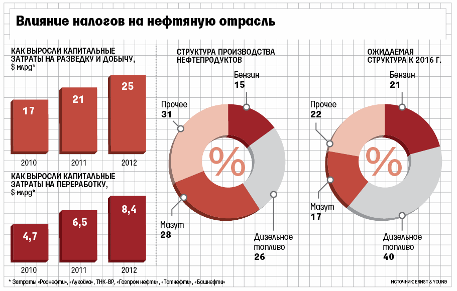 Представители «Роснефти», «Сургутнефтегаза», «Лукойла», «Газпром нефти» и «Башнефти» отказались комментировать расчеты Ernst & Young.