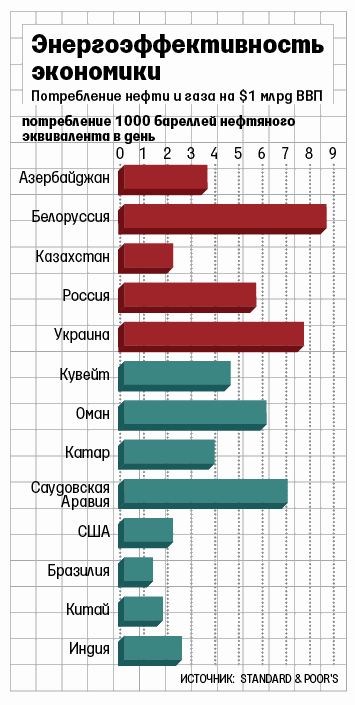 Рост экономики сдерживают отсутствие структурных реформ и низкая энергоэффективность, говорится в отчете S&P: нужно модернизировать производственную базу и транспортную инфраструктуру, снижать роль государства в экономике и улучшать инвестиционный климат. Россия потребляет около 50% добытых нефти и газа, подсчитали в S&P (для сравнения: Саудовская Аравия – 35%).