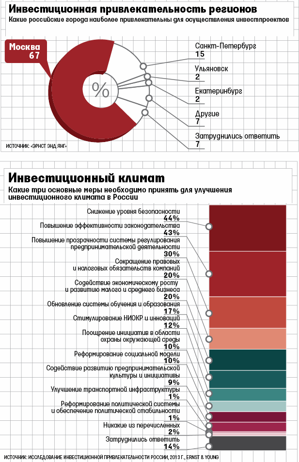 Главным недостатком остается политическая, законодательная и административная среда: 55% респондентов указали, что качество институтов осложняет ведение бизнеса в России. Слабая институциональная среда отпугивает не только потенциальных инвесторов, но и тех, кто уже ведет бизнес в России, констатирует E&Y, подтверждение этому – отток капитала.