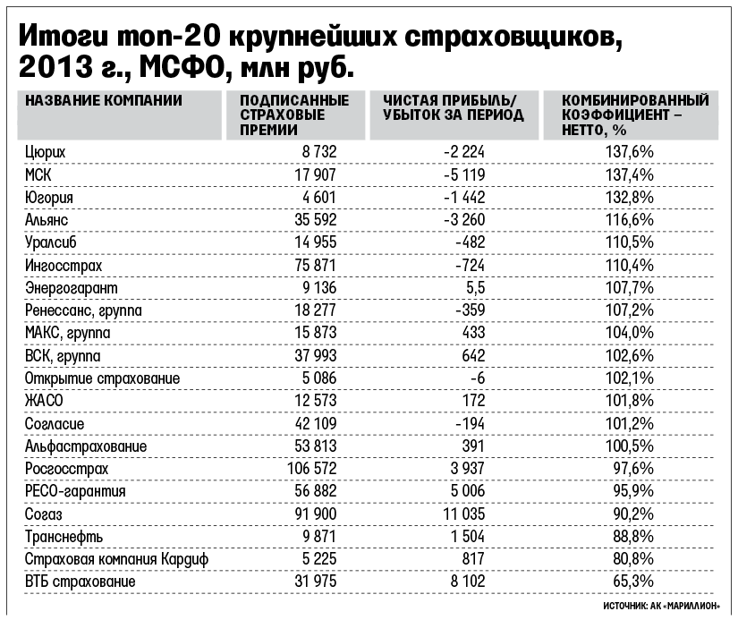 14 из 20 крупнейших российских страховщиков в 2013 г. получили убыток от основной деятельности. Повода для паники нет, уверяют эксперты