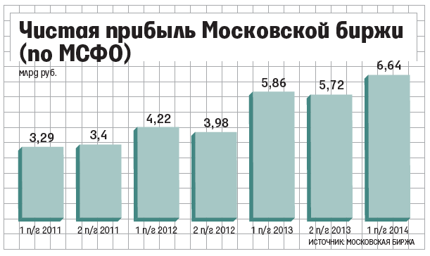 Процентный доход биржи был поддержан повышением ставки ЦБ на 200 б. п. в марте и апреле (сейчас - 8%), пишут аналитики UBS. Также банки из-за санкций стали искать замену западному финансированию на внутреннем рынке, из-за чего ставки на межбанке выросли. Среднее значение однодневной ставки предоставления рублевых кредитов (депозитов) MosPrime выросло во II квартале с 6,9 до 8,3%.