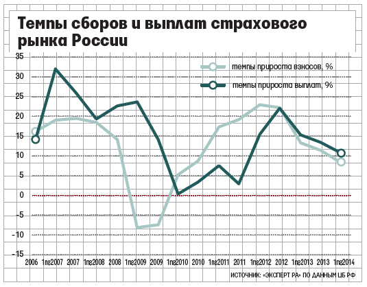 В первом полугодии 2014 г. сборы страховщиков выросли на 8,2% (до 505,8 млрд руб.), в то время как выплаты - на 10,7%, достигнув 215 млрд руб. Темпы роста выплат опережают взносы второй год подряд (см. таблицу), что происходило лишь в период кризиса 2008-2009 гг., напоминает директор по страховым рейтингам «Эксперт РА» Алексей Янин. За год коэффициент убыточности страховщиков вырос с 41,6 до 42,5%.