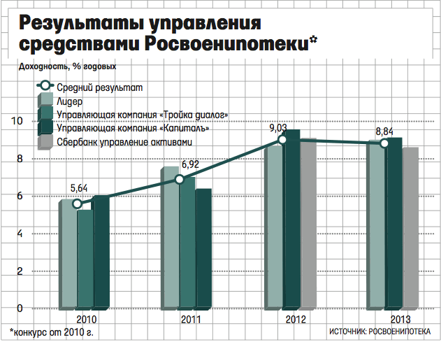 За возврат переданной суммы «Росвоенипотека» не беспокоится. «Подход к инвестированию строго регламентирован и консервативен, риска потери средств нет», - говорит Шумилин. В 2013 г. управляющие размещали 90% средств на депозитах и 10% в ценных бумагах надежных эмитентов, следует из документов «Росвоенипотеки».
