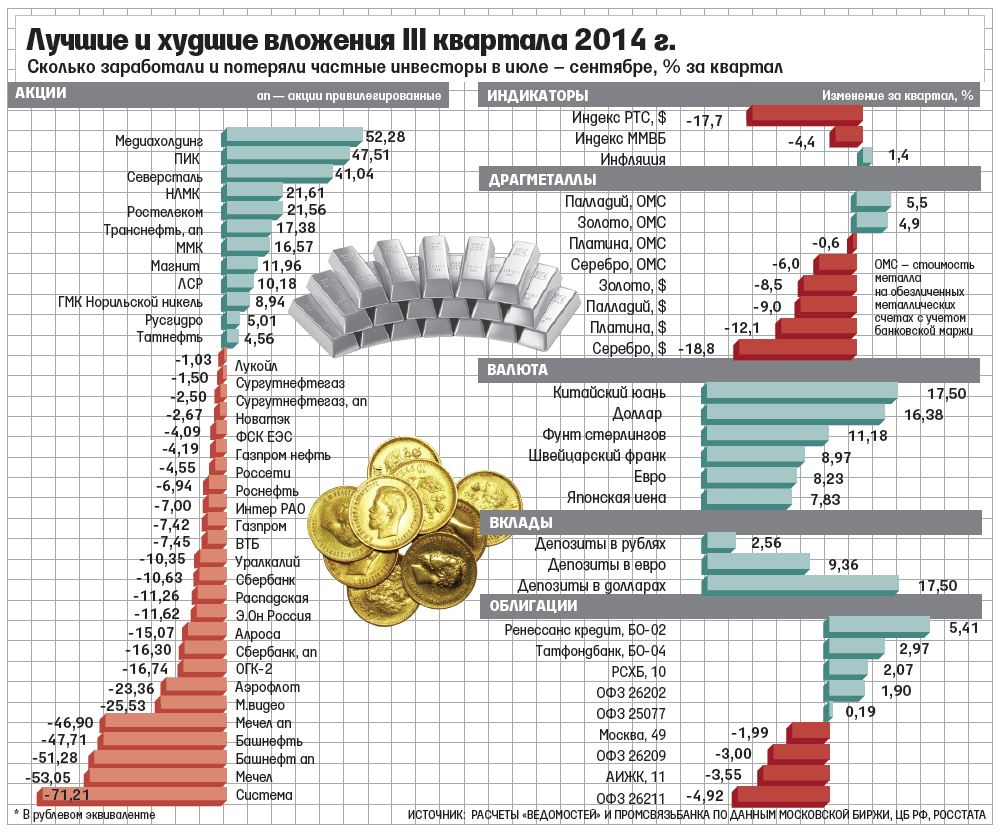 Очередные санкции Запада и контрмеры России, дешевеющая нефть и, как следствие, ослабление рубля спутали карты многим инвесторам. Но не тем, кто вкладывал в акции. Для них III квартал по традиции выдался не очень удачным.