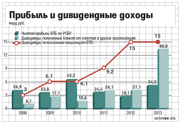 В начале этого года представитель ВТБ признавал, что согласно ожиданиям банка большую часть его прибыли будут составлять именно дивиденды «дочек».