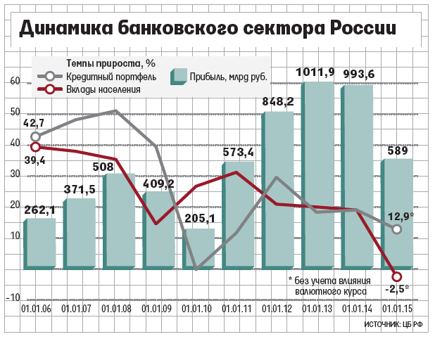 В 2014 г. банки лишились 2,5% денег населения и 40% прибыли, в нынешнем году лучше не станет, считают эксперты