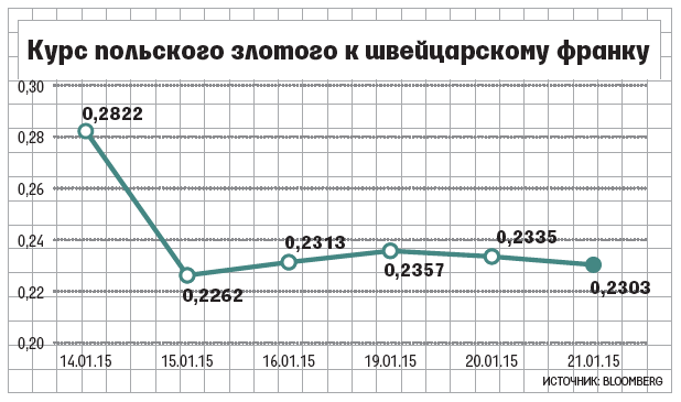 Польские банки готовы обсуждать реструктуризацию кредитов и отрицательные ставки, говорит гендиректор MBank («дочка» Commerzbank) Цезарий Стипулковски. «Остается вопрос, что будет, если курс упадет еще сильнее и банковская маржа перестанет его покрывать», - добавляет он (цитата по Bloomberg). «Ситуация очень изменчивая и эмоциональная, сейчас не время для мгновенных решений, - сказал Reuters другой польский банкир. - Мы проанализируем, как франк влияет на качество наших активов, и примем решение не ранее чем через три месяца». С 15 января акции PKO Bank Polski подешевели на 10,2%, Getin Noble Bank - на 26,7%, MBank - на 12,4%.