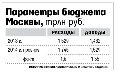 Департамент финансов Москвы опубликовал предварительные данные об исполнении бюджета в прошлом году. По сравнению с 2013 г. доходы выросли на 4,5%, расходы - на 4,8% до 1,55 трлн и 1,61 трлн руб. соответственно.