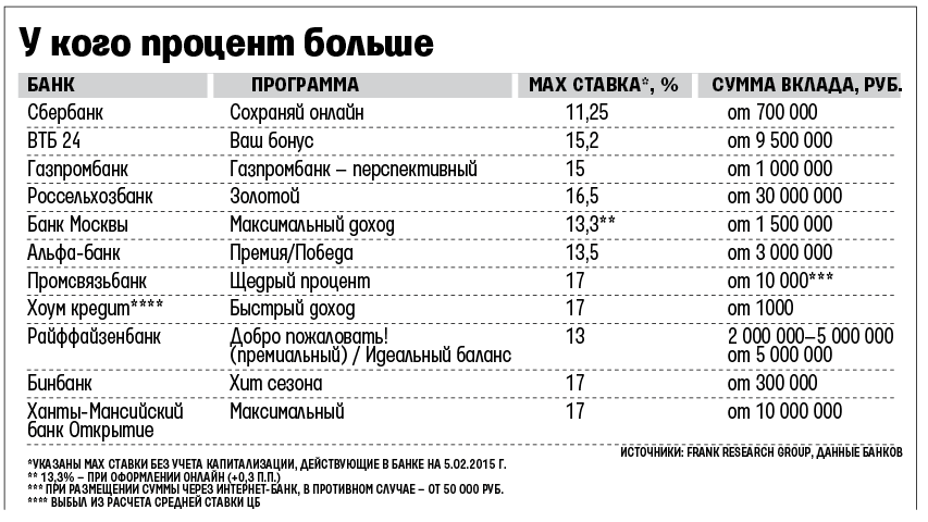 Эти банки предлагают ставки, более чем на 3 п. п. превышающие установленный Центробанком ориентир - среднюю максимальную ставку в 10 крупнейших розничных банках.