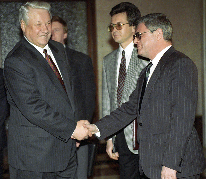 Президент России Борис Ельцин (слева) и советник президента по экономическим вопросам Александр Лившиц.