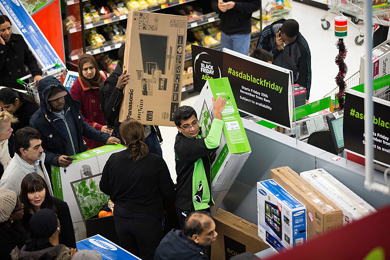 «Черная пятница» в США, которая проводится после Дня Благодарения, в этом году началась вечером в четверг. В связи с этим торговые сети обвинили в "подрыве праздничного духа" - все больше людей не могут устоять перед искушением и проводят День благодарения не в кругу семьи, а в очередях. Многие начали занимать очередь за несколько дней до начала распродаж, некоторые взяли с этой целью отгулы на работе.