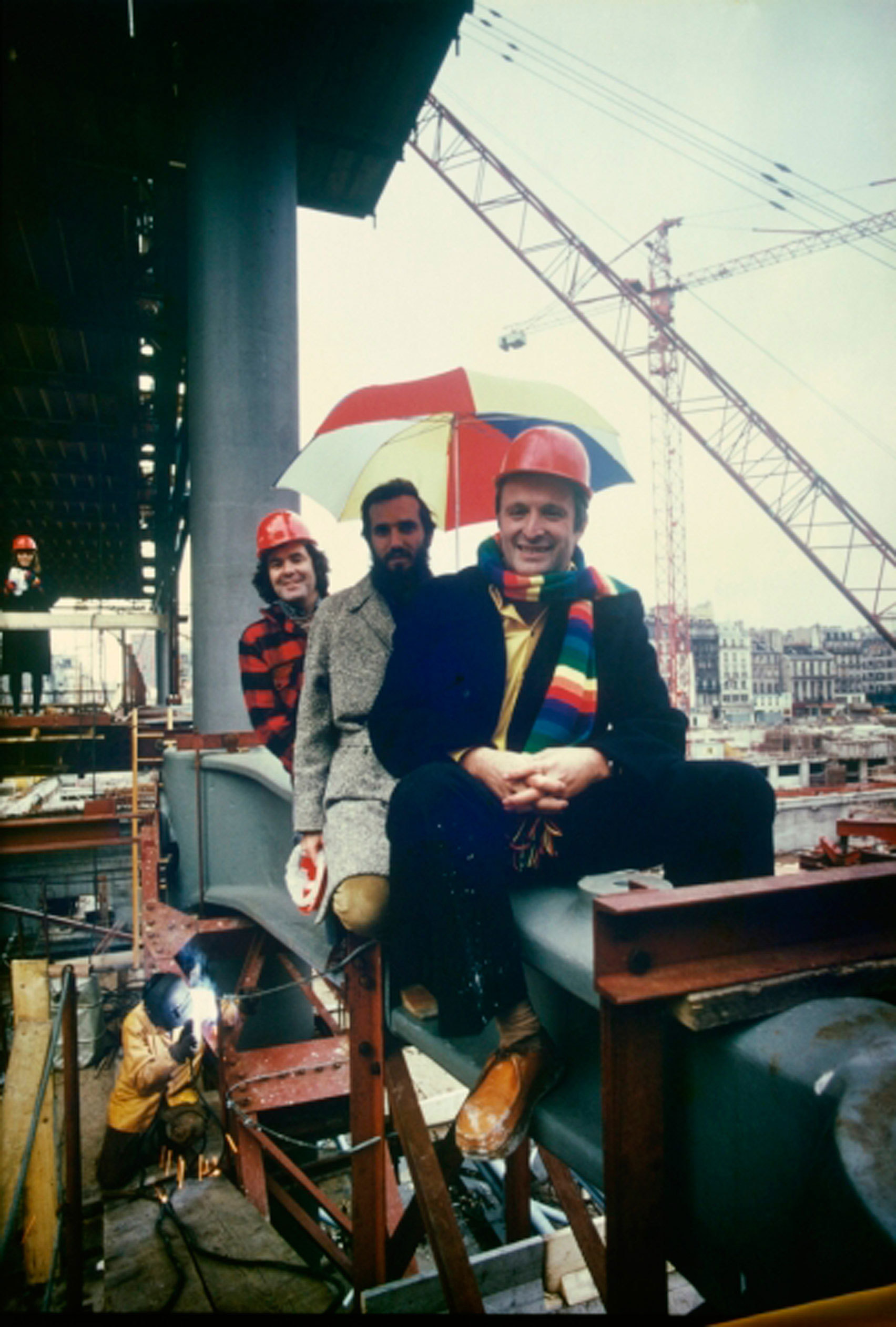 И нициатива создания культурного центра в квартале Бобур полностью принадлежала тогдашнему президенту республики Жоржу Помпиду. Импульсом переключения внимания общественности к современному искусству и неформальным движениям послужили студенческие волнения, в тот момент грозившие свержением правительства. В 1969 году был объявлен международный архитектурный конкурс на проект здания, которое должно было занять место снесенных недействующих фабрик и ветхого жилья. Победу одержало радикальное архитектурное предложение молодых зодчих, итальянца Ренцо Пиано и британца Ричарда Роджерса, выбранное из присланных 680 проектов. Авторы образца стиля хай-тек, вывернутой наизнанку десятиэтажной конструкции из стекла и литой стали с вынесенной наружу инженерией и эскалатором, протянувшимся вдоль фасада, интерпретировали свое творение как «постройку для развлечения и культуры, своего рода машину, информативный инструмент».