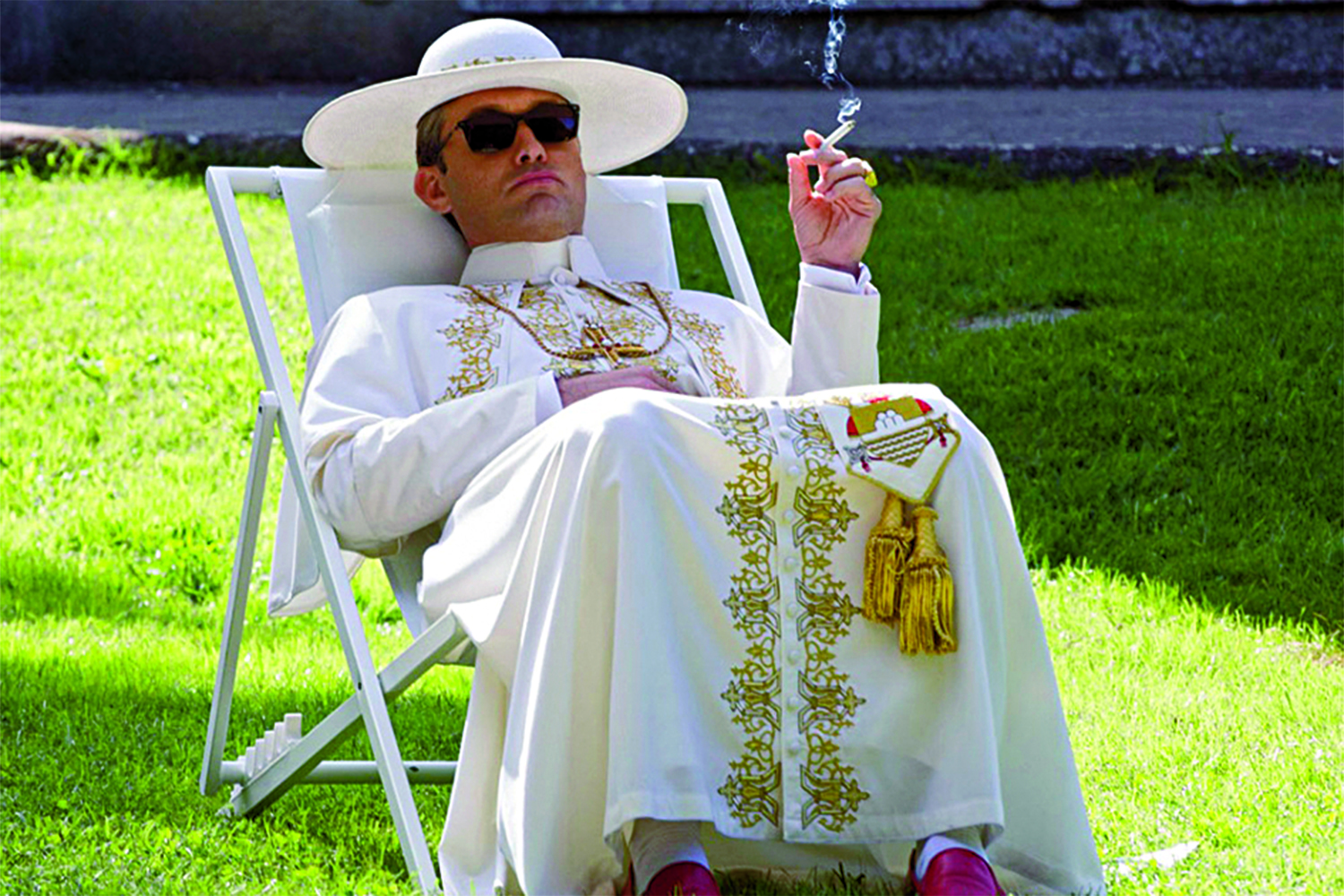 Джон Малкович, «новый папа», имеет в своем распоряжении 20 костюмов, сшитых на заказ неаполитанскими портными Attolini; его обувь – от Church’s, халаты сшиты из парчи Rubelli, авторами головных уборов стали Pieroni и Borsalino, а перчатки изготовил неаполитанский семейный бренд Merola.