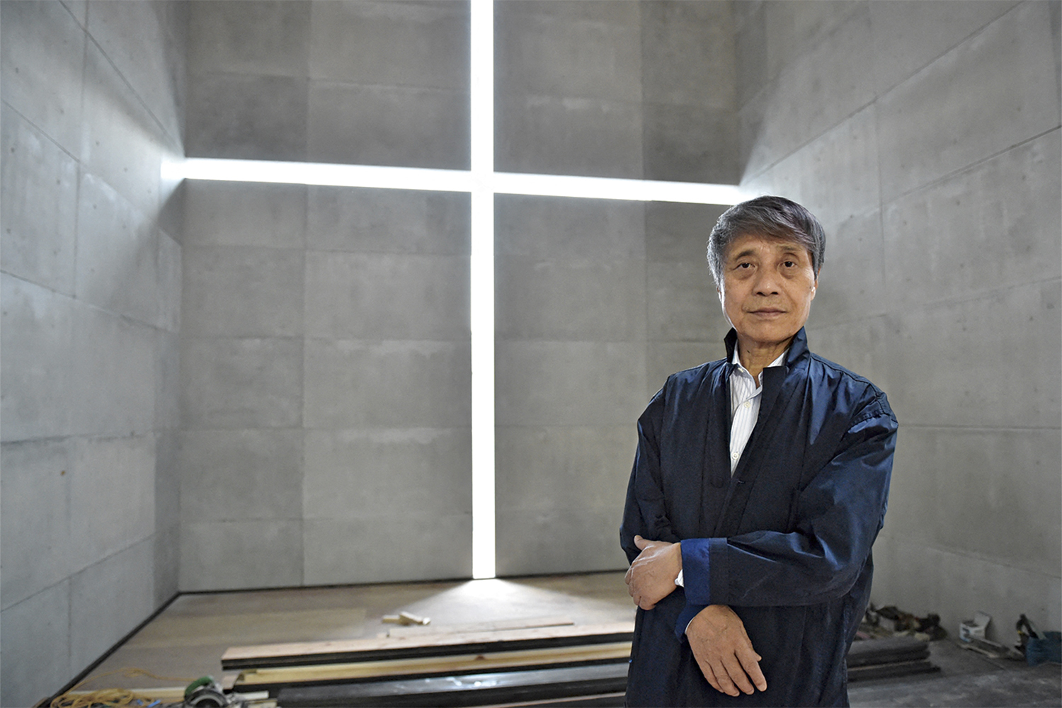 Еще выше расположен словно бы парящий в небе купол из стекла и металла, пропускающий солнечные лучи и напомнивший Андо римский Пантеон. Архитектор подчеркнул игру света и тени, граничности и бесконечности пространства, уходящего вверх и сливающегося с облаками, «цилинд- соединяет землю и небу», комментирует сам Тадао Андо.
