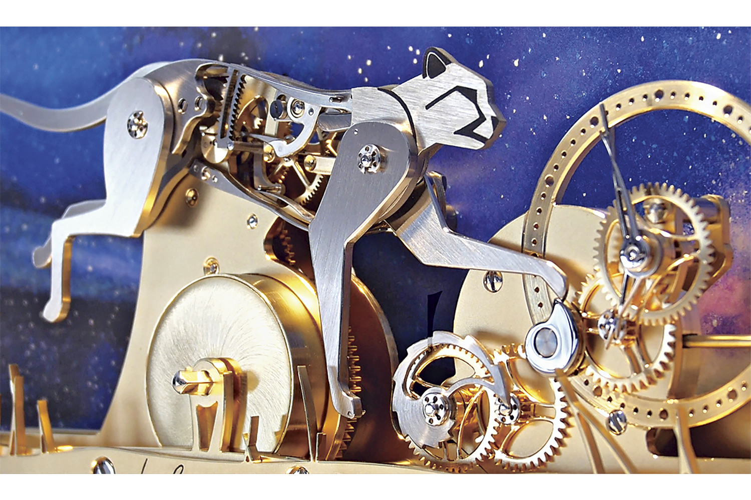 На сегодня самые сложные часы Джона-Микаэля Фло с точки зрения исполнения – Le Cabre, встающая на дыбы лошадь. «Мой принцип работы – максимальная простота решения и минимум необходимых деталей. Но механическая лошадь в движении – это новый уровень, даже для таких фанатиков, типа меня. Кинематика движения галопом и рысью связывает воедино сотни мускулов, синхронизированных в совершенной гармонии и плавности. Это сочетание силы и грации, мощи и ловкости. Мне нужно было связать идеальную устойчивость на задних конечностях с асинхронной подвижностью двух передних конечностей, необходимой для этого канонического движения лощади, которое мы видим на множестве известных картин. Считаю механическое воспроизведение этого движения техническим подвигом. Однако само по себе техническое достижение – ничто без эмоций. Для меня автоматоны ручной работы – это страсть. Они обладают собственным элементом поэзии, индивидуальным подходом, который отличает их от роботов».